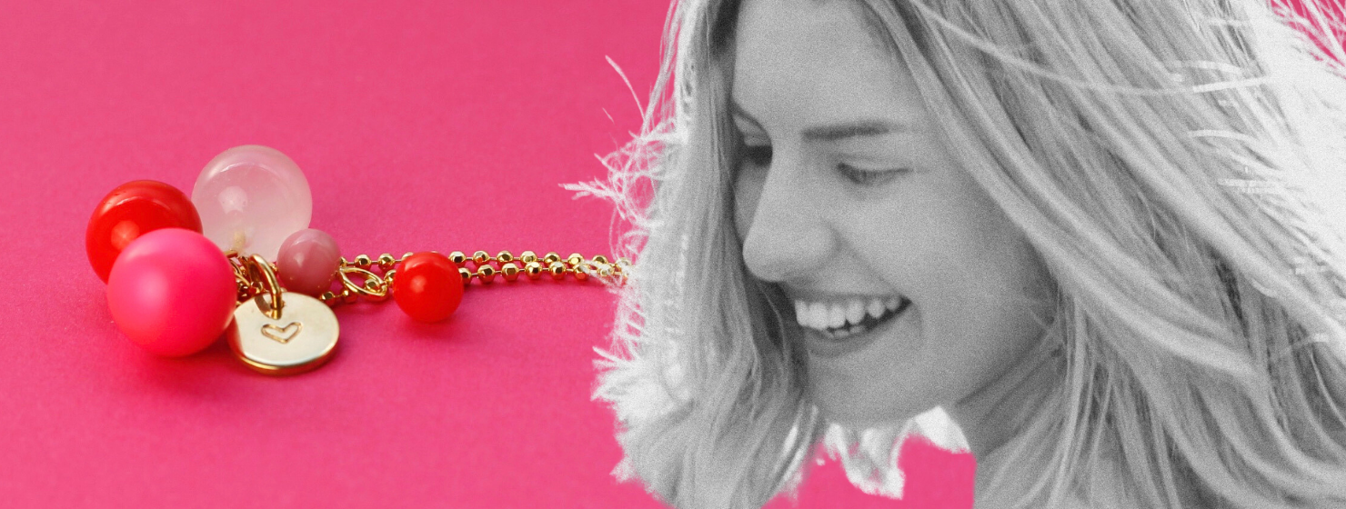 Silberkette mit 5 variablen Anhängern pink/grün